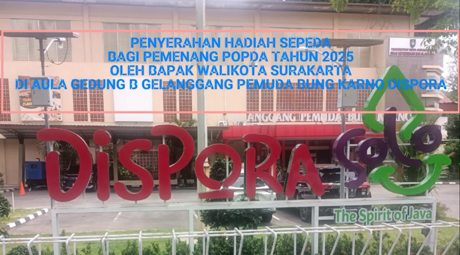 Penyerahan Hadiah Sepeda Bagi Pemenang POPDA Tahun 2025 oleh Walikota Surakarta Bapak Drs. Teguh Prakosa di Aula Gedung B Gelanggang Pemuda Bung Karno Dinas Kepemudaan dan Olahraga Kota Surakarta, Kamis 19 Februari 2025