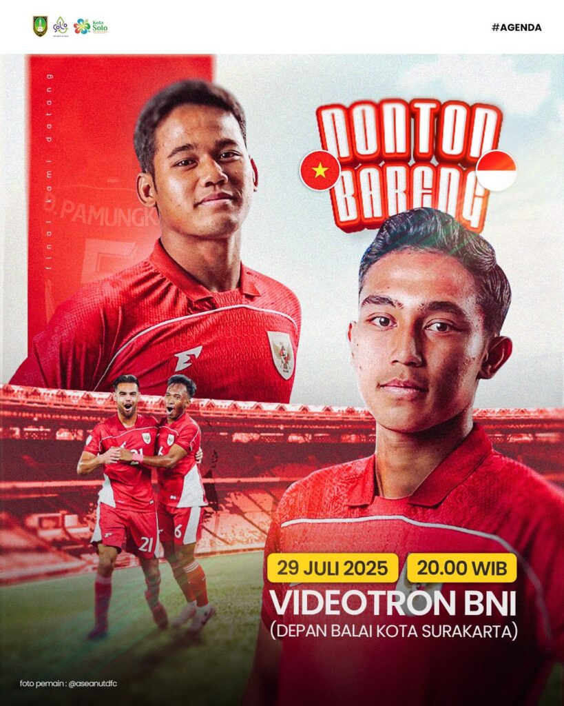 Dalam rangka memberikan dukungan penuh kepada Timnas Sepakbola kebanggaan kita semua pada laga Final Asean Championship U-23, kami Pemerintah Kota Surakarta akan mengadakan Nonton Bareng pada: