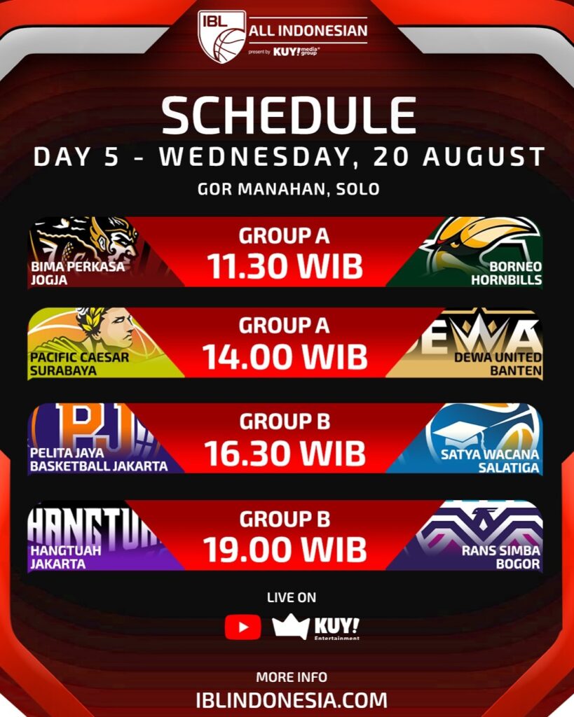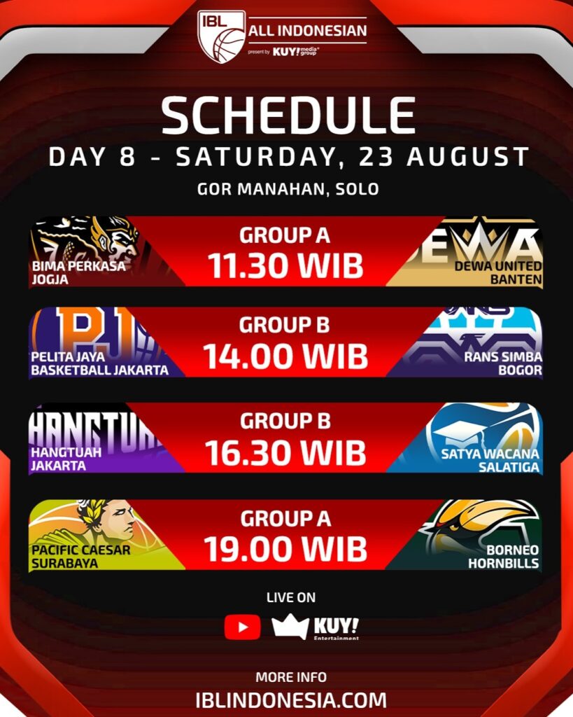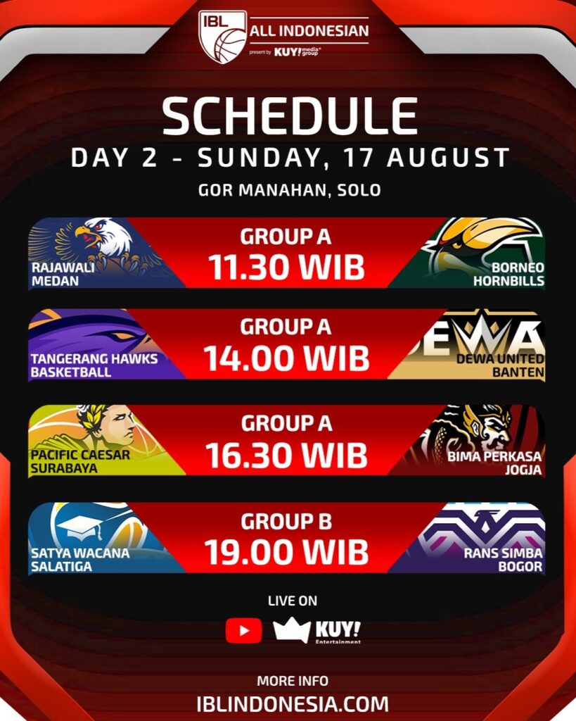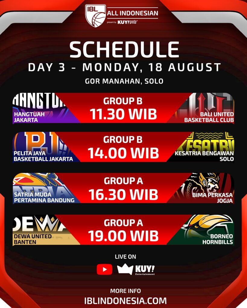 Tim-tim akan bersaing untuk memperebutkan #PialaMenpora di GOR Indoor Manahan, Solo!!🏆 📆 Fase Grup: 16-24 Agustus Urutan pertama dan kedua dari tiap grup akan melaju ke babak berikutnya: 🔥 Semifinal: 26 Agustus 🔥 Final: 28-31 Agustus 📺 Live on YouTube KUY Entertainment Catat tanggalnya, IBL Fans! Jangan sampai kelewatan untuk dukung langsung tim favorit kalian Mari Kita Dukung Tim Kesatria Bengawan Solo Agar Bisa Menjuarai Indonesia Basketball League….